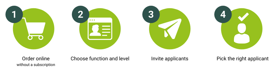 Our reports provide scores on competencies and skills. In addition, each report gives a single score showing how your candidate compares to all other candidates for this exact job profile and level. The reports include interview questions to support your conversation with the applicant. The human aspect remains important. Combining an assessment with an interview increases the predictive value.